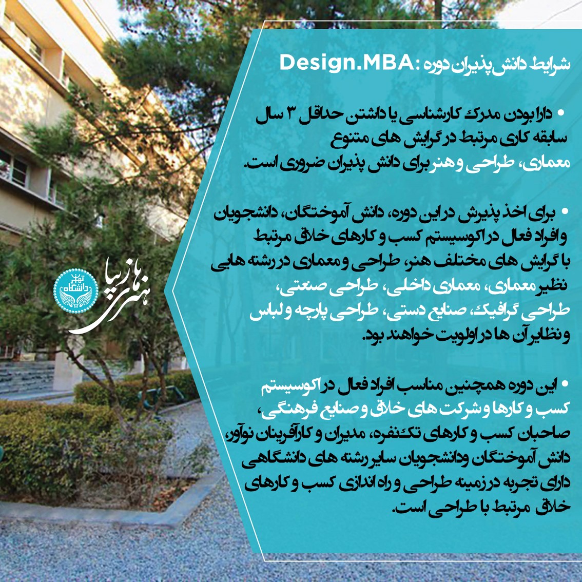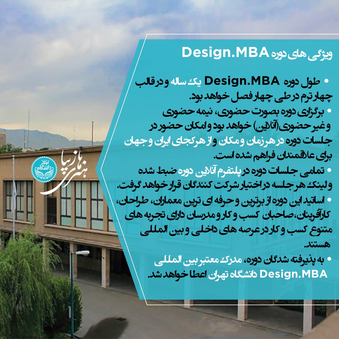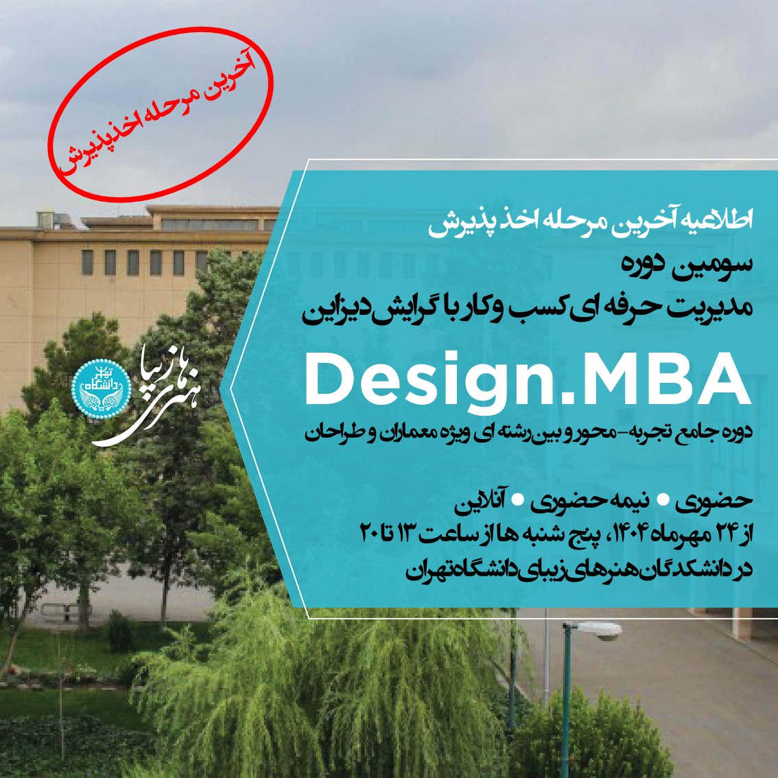 اطلاعیه آخرین مرحله اخذ پذیرش از سومین دوره مدیریت حرفه ای کسب و کار با گرایش طراحی Design. MBA در دانشکدگان هنرهای زیبای دانشگاه تهران: